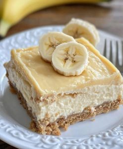 These Banana Cream Cheesecake Bars are the perfect combination of creamy, rich cheesecake and sweet banana flavor — all layered over a buttery vanilla wafer crust. They taste like banana cream pie and cheesecake had a baby! Easy to make and ideal for potlucks, birthdays, or a simple family dessert.